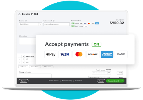 Send invoices with a Pay Now button, and accept credit cards, debit cards, and bank transfer payments on the go, on any device.